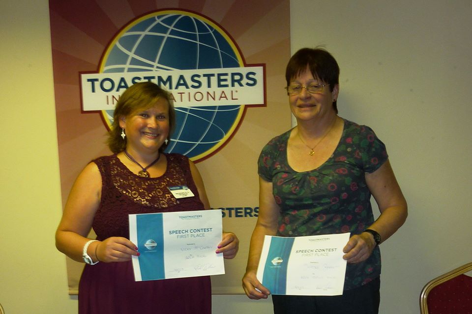 Winners of the Area 36 Final last night at O’Donnell’s Mounthawk. Winner of Humorous Speech contest is Vicky McCarthy and winner of the Table Topics contest is Deirdre Barrett. Both Vicky and Deirdre will be representing Area 36 (Kerry and West Limerick) in the Division A final in Kinsale on Sunday. Bring on the Corkoniens.